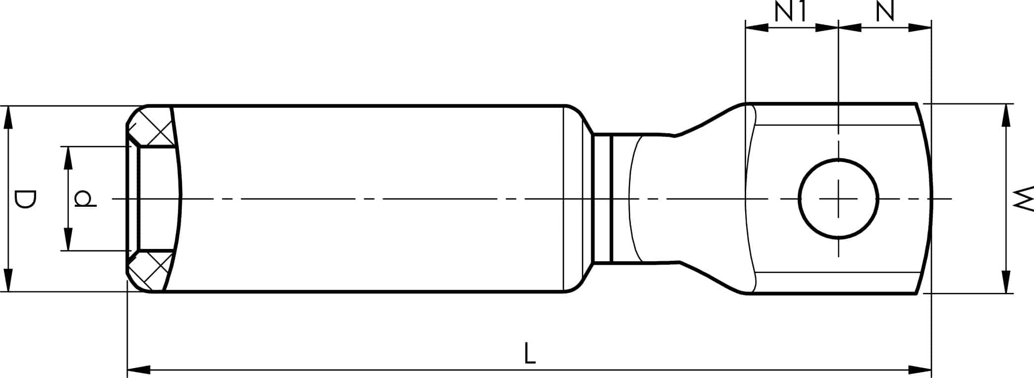 AlCu-Kabelschuh für mehrdrähtige Al-Leiter mit 300 mm², Platte mit M16-Loch. Verwendung mit dem zertifizierten Elpress-System V1300.
