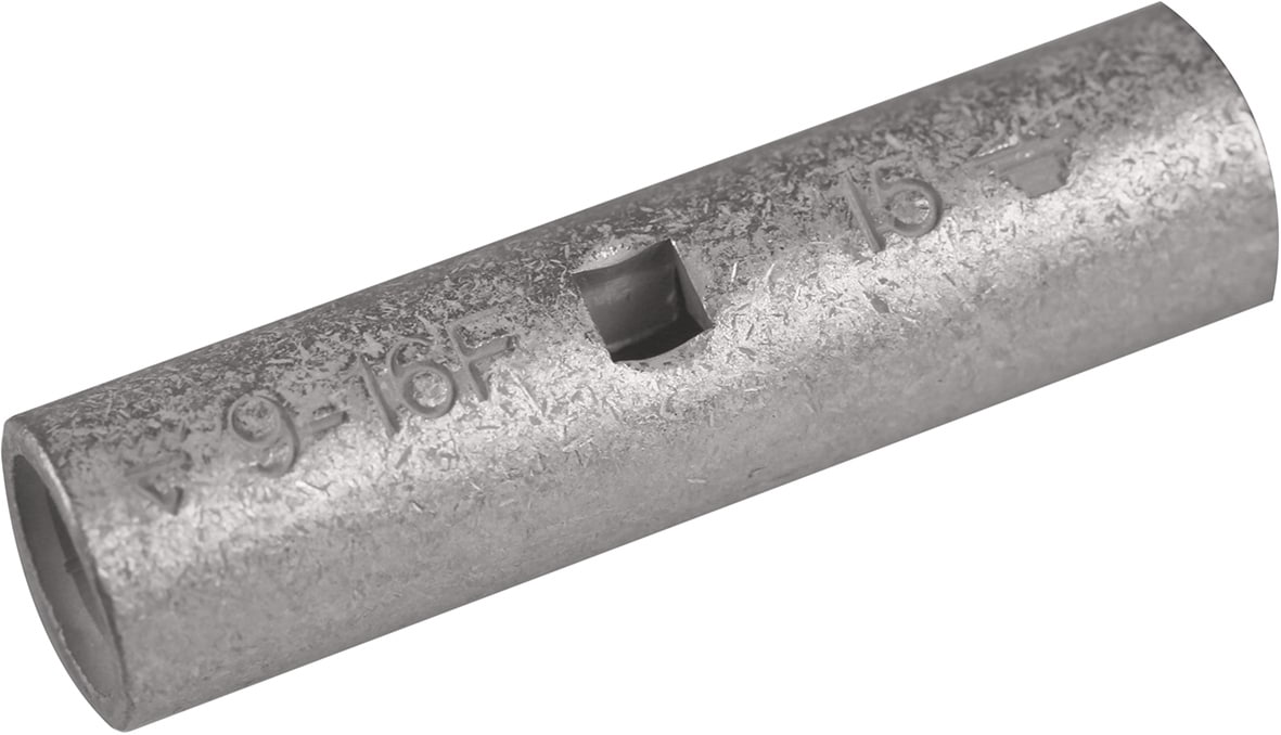 Unisolierter Stoßverbinder für feindrähtige (Klasse 5) und mehrdrähtige (Klasse 2) Cu-Leiter, 16 mm². Verwendung mit den zertifizierten Elpress-Systemen V600, V1300, V250.