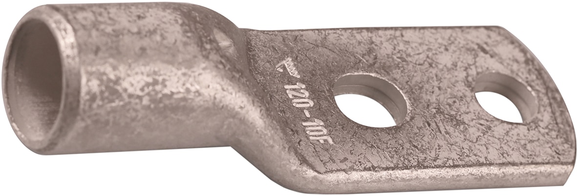 2 holed tube terminal for multi-stranded (class 5) and stranded (class 2) Cu-conductors (acc. to IEC 60228), 120 mm², with two M10 holes in the palm. Used with Elpress certified systems V600, V1300 or V250.