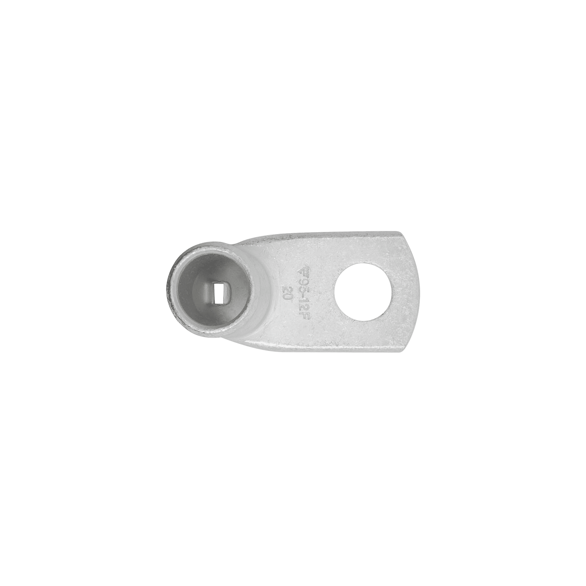 Angled tube terminal 90° for multi-stranded (class 5) and stranded (class 2) Cu conductors (acc. to IEC 60228), 95 mm², with an M12 hole in the palm. Used with Elpress certified systems V600, V1300, V250.
