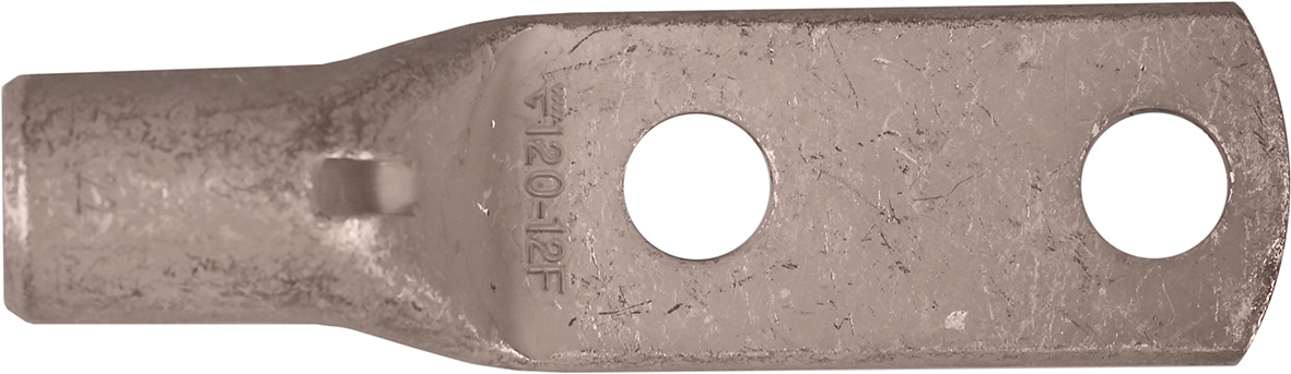 2 holed tube terminal for multi-stranded (class 5) and stranded (class 2) Cu-conductors (acc. to IEC 60228), 120 mm², with two M12 holes in the palm. Used with Elpress certified systems V600, V1300 or V250.