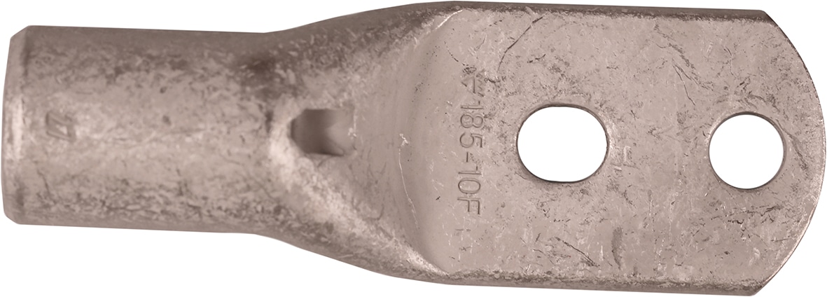 2 holed tube terminal for multi-stranded (class 5) and stranded (class 2) Cu-conductors (acc. to IEC 60228), 185 mm², with two M10 holes in the palm. Used with Elpress certified systems V1300 or V250.