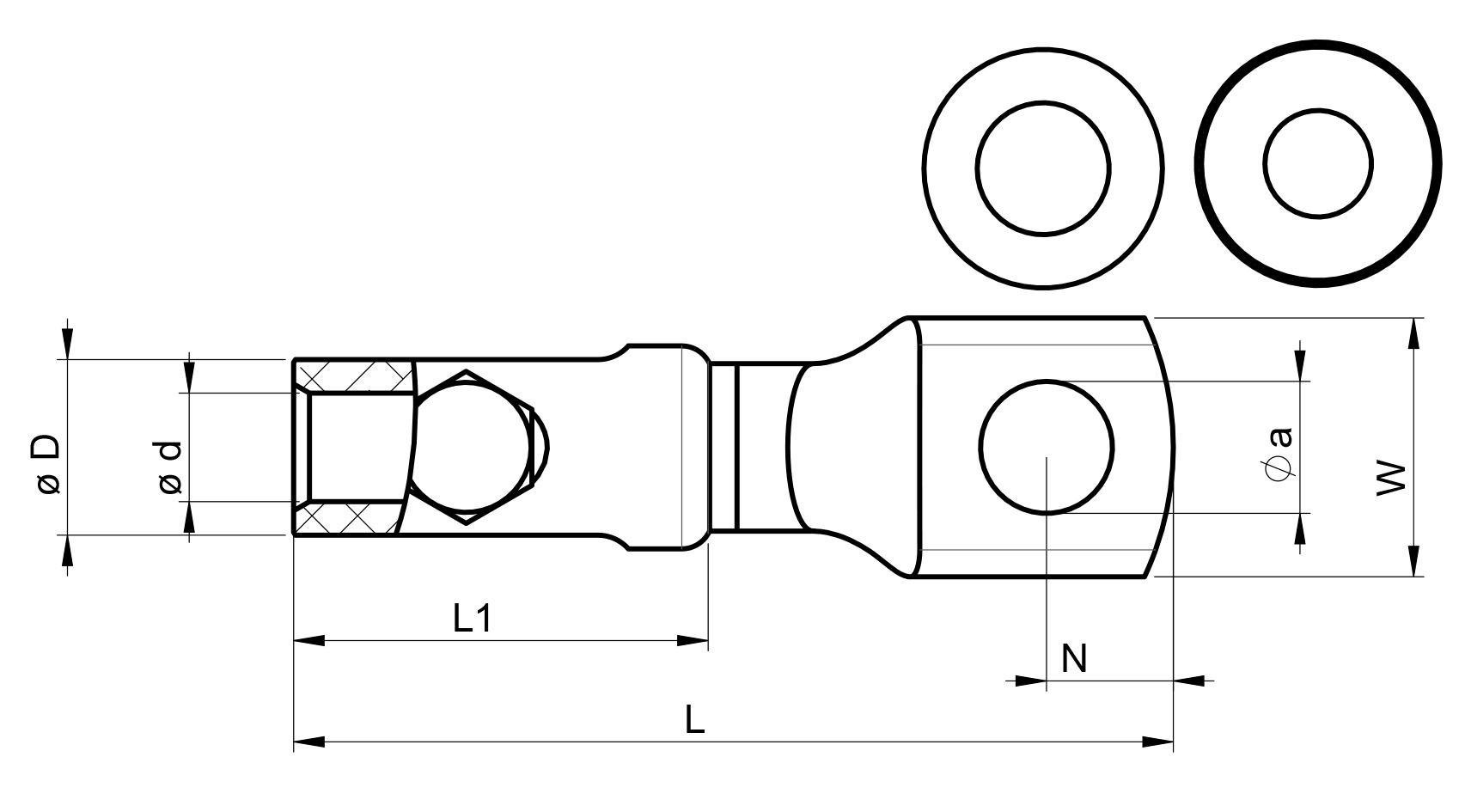 Shearbolt terminal 1 kV that is suitable for both Al and Cu class 1 and class 2 cable. Round cable 10-50 mm², sector shaped cable 10-50 mm². Suitable for both M10 and M12, reduction washer and flat washer are included when ordering.