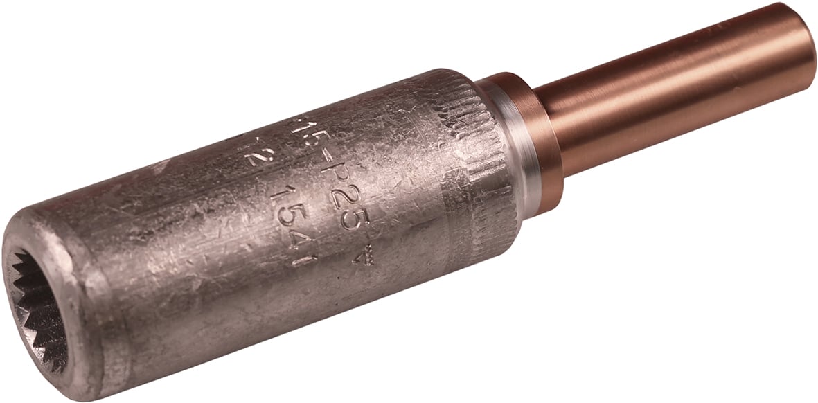 AlCu pin terminal for stranded Al cable 120 mm², or for solid Al cable 150 mm². Used with Elpress certified systems V1300, V250.