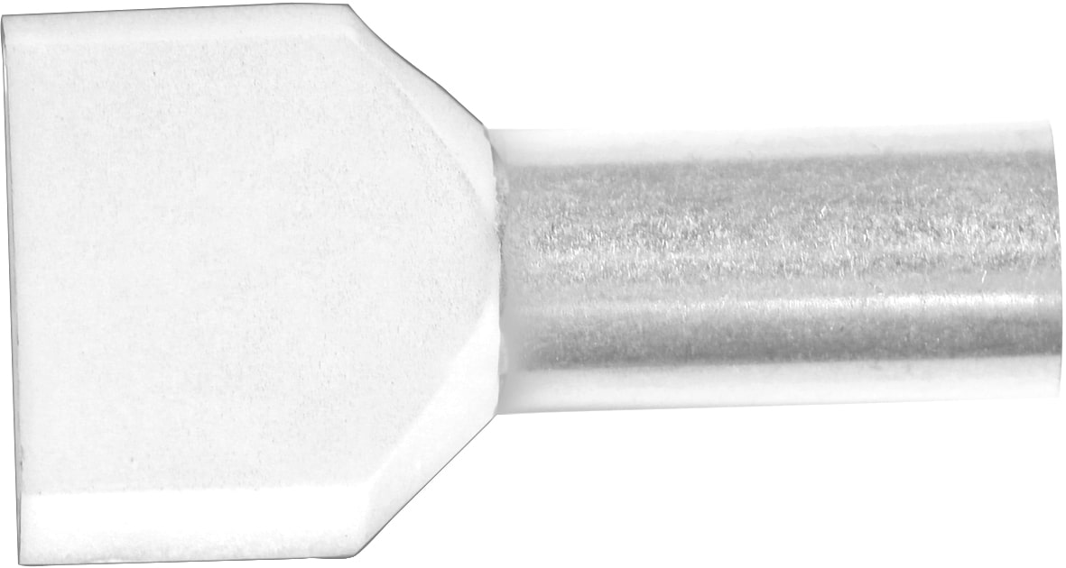 Pre-insulated TWIN end terminal ETW2, 10 mm². Used with certified tool GEB4010C-TWIN.