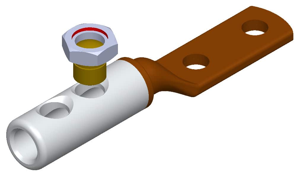Shearbolt terminal 1-36 kV that is suitable for both Al and Cu class 1 and class 2 cable, with two M12 holes in the palm. Round cable 95-150 mm², sector shaped cable 95 mm².