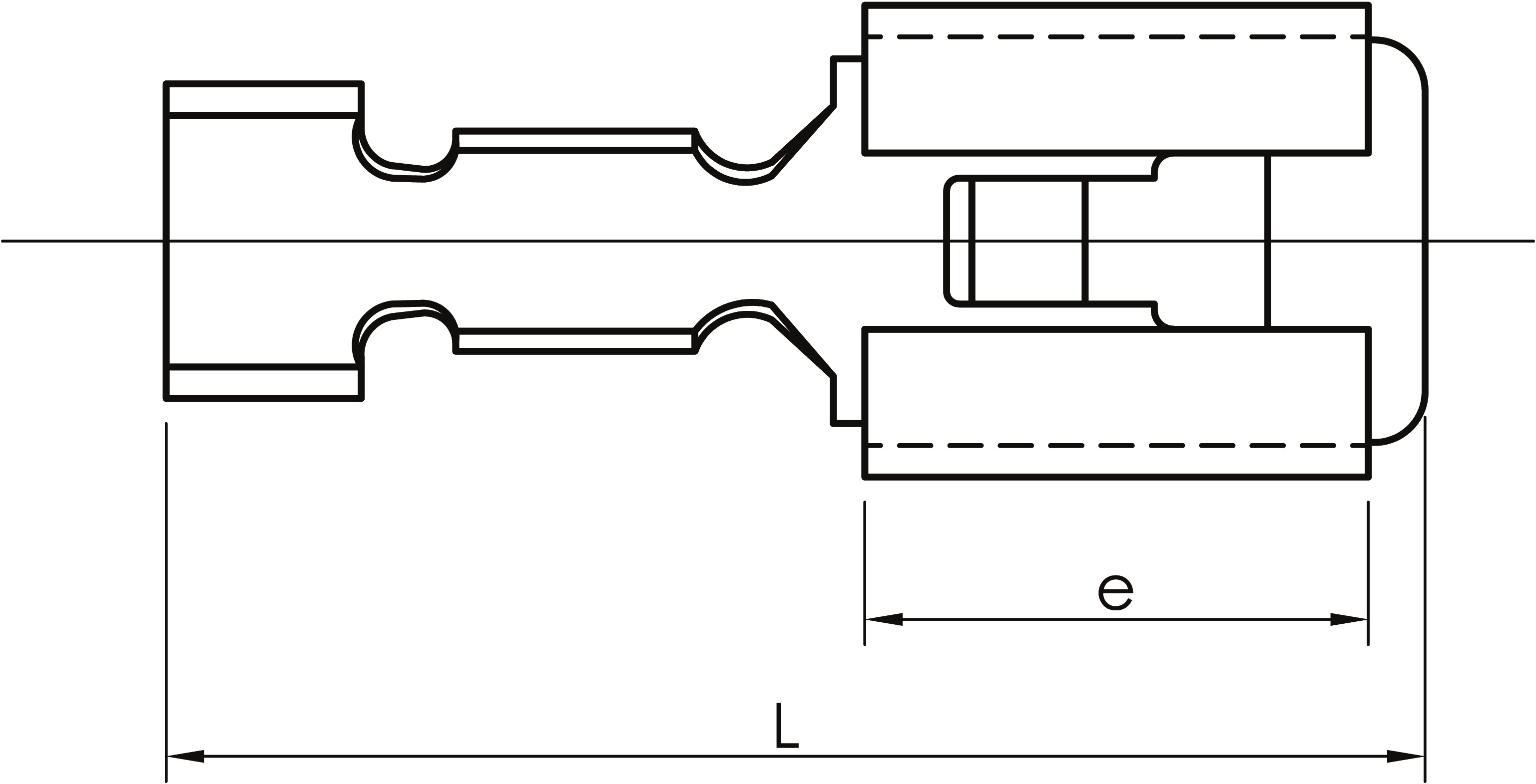 Eristämätön lattapistokehylsy kaapelille 4 - 6 mm². Käytetään sertifioidun työkalun GRB0560 kanssa.