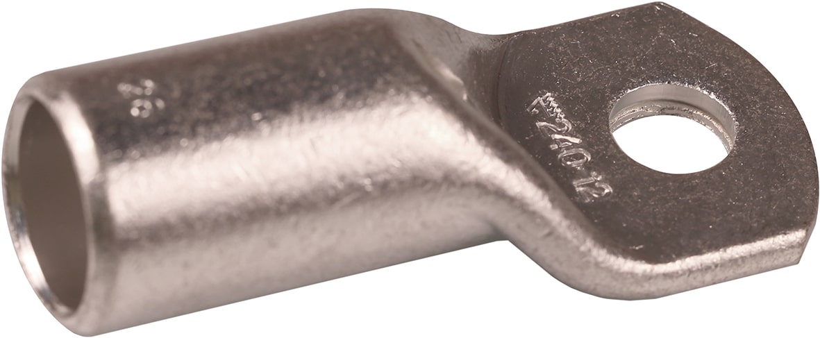 Putkikaapelikenkä harvasäikeiselle (luokka 2) (IEC 60228) 240 mm² kuparijohtimelle, laatassa M12-reikä. Käytetään Elpressin sertifioidun järjestelmän V600, V1300, V250 kanssa.
