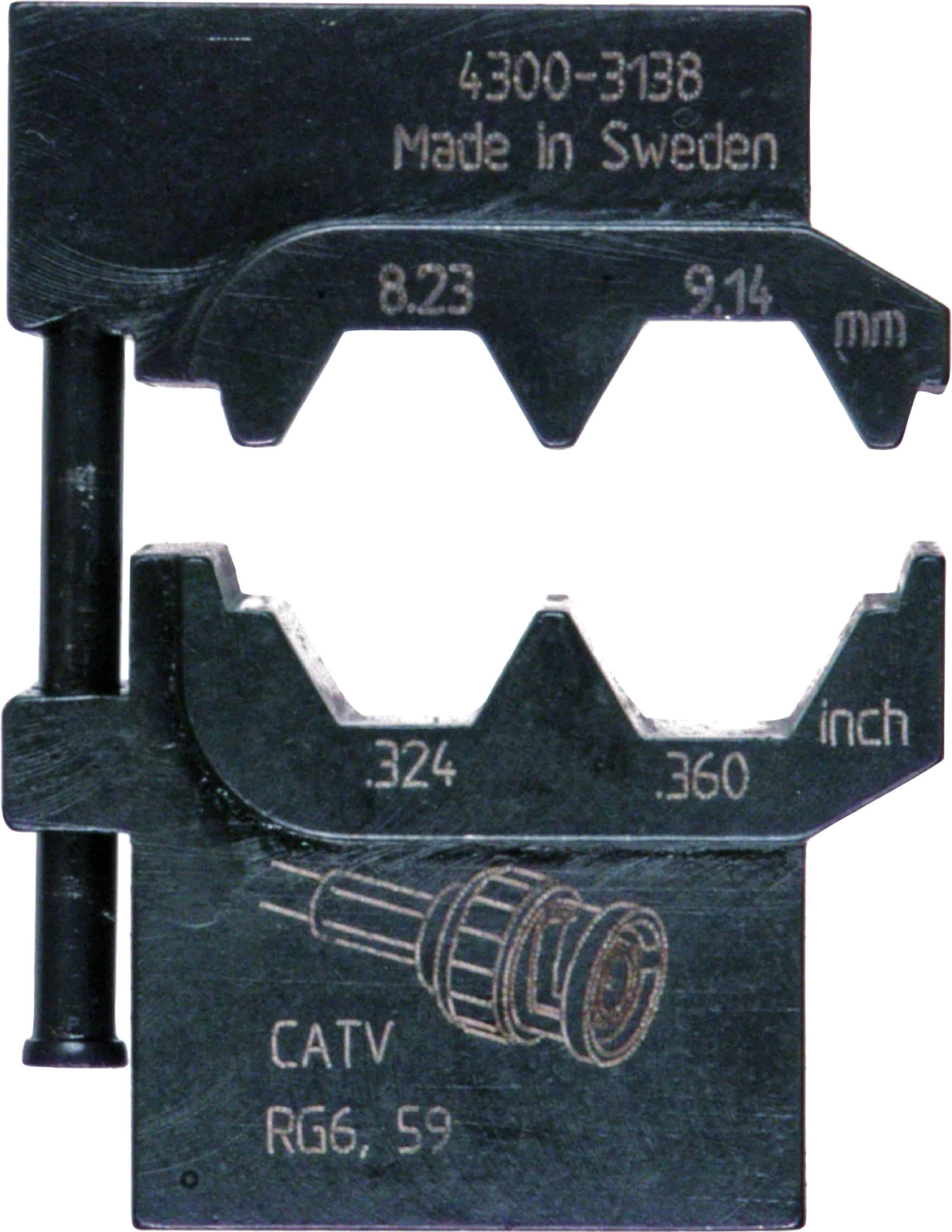 Elpress MOBILE -työkalun puristusleuka RG6, 59 -koaksiaaliliittimien puristusta varten.