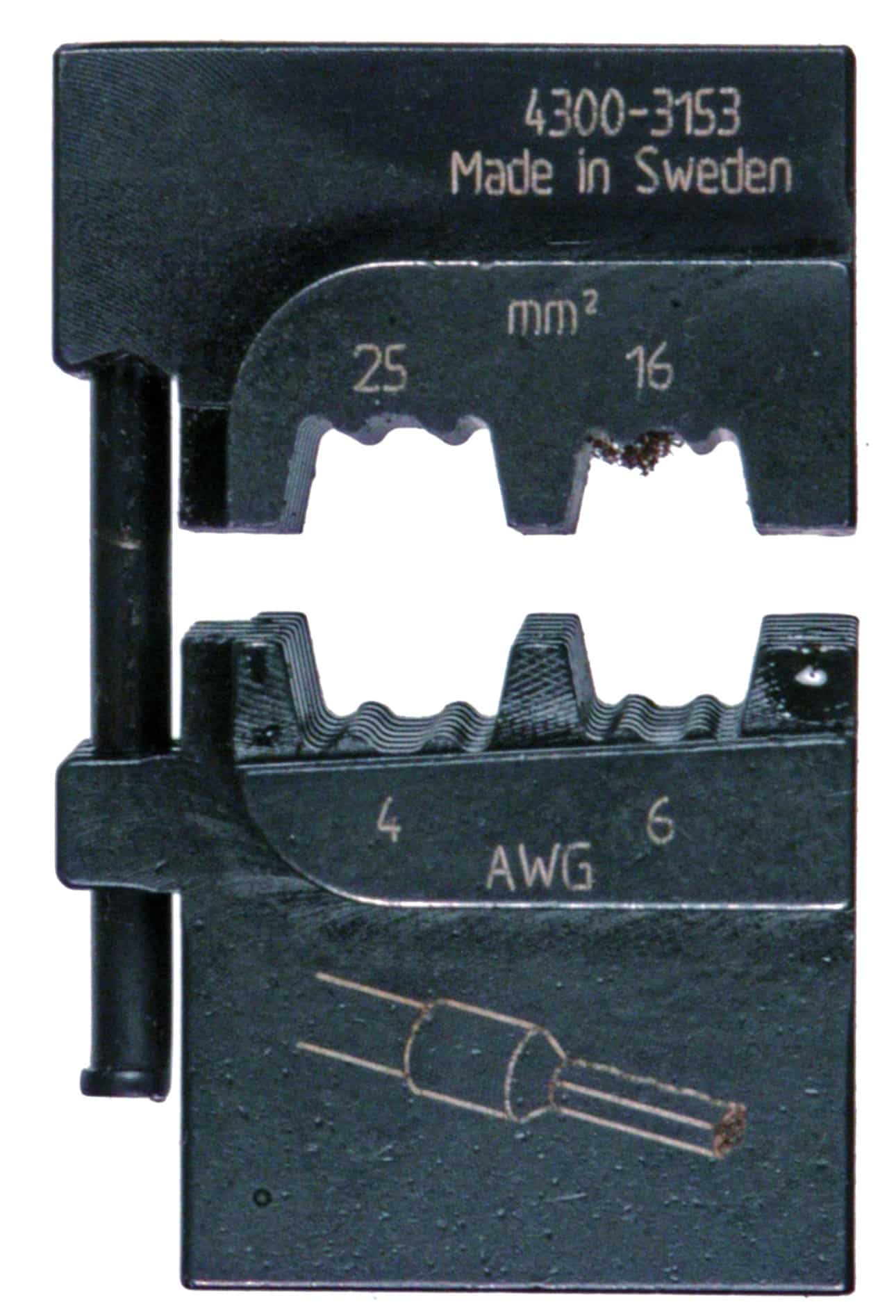 Puristusleuka päätehylsyjen 16 - 25 mm² puristusta varten.