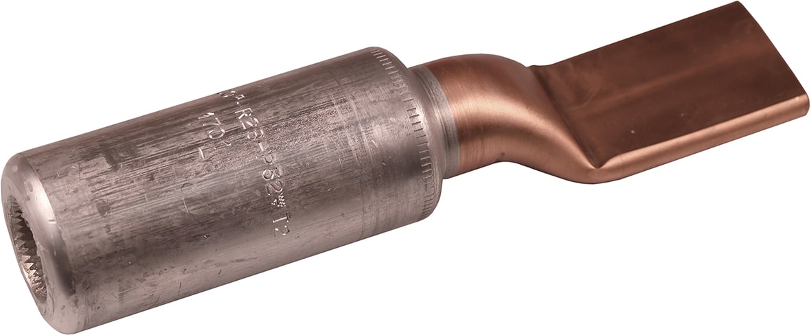 AlCu-kabelsko for fåtrådet Al-kabel 500 mm², med uboret plate. Brukes med Elpress’ sertifiserte system V250.